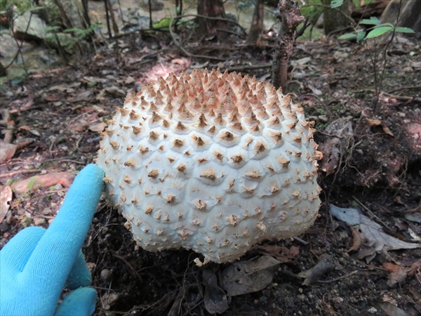 | こちらはとげとげキノコ | 林道で小休止 | おやつは三浦さん特製柏餅 |