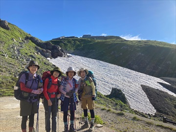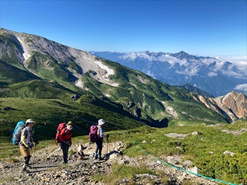 まず、杓子岳をめざして出発。続いて白馬槍ヶ岳へ。三山縦走を制覇。難所を経て白馬鑓温泉に到着