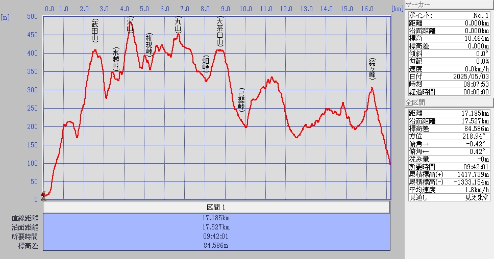 歩いたコース距離と標高