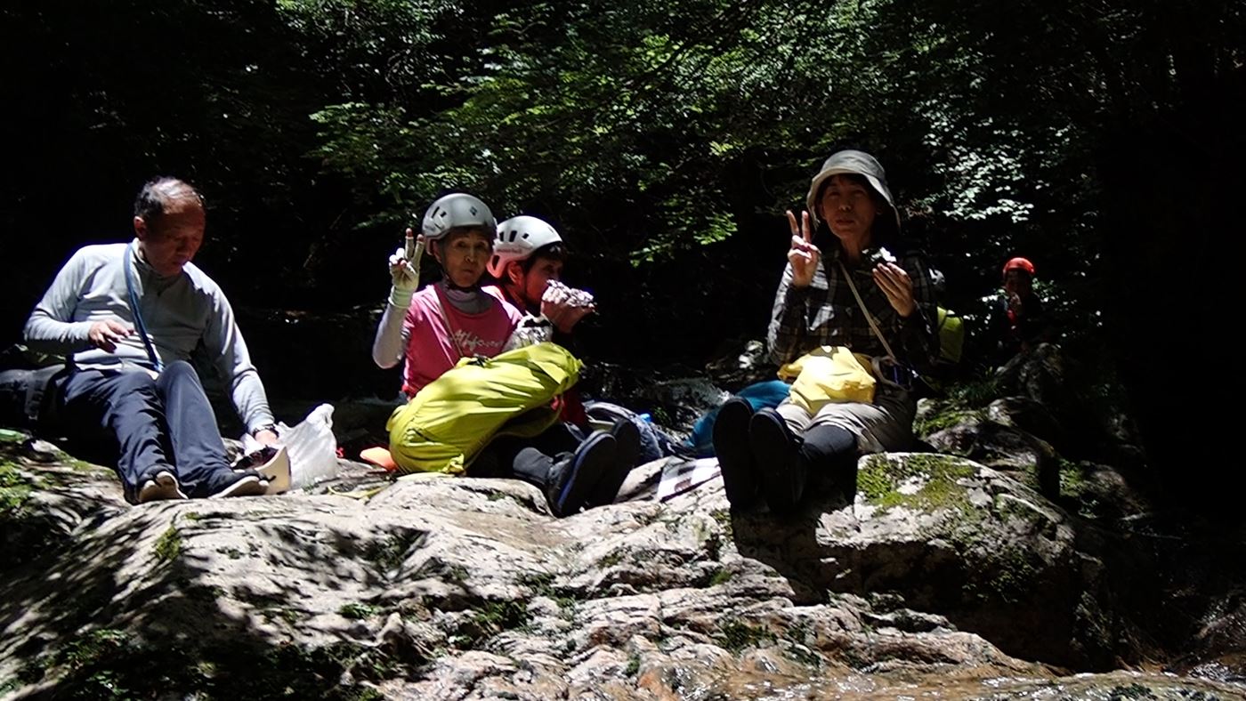 赤ナメラを周回…少し不安でしたが、すぐにそんな気持ちも吹き飛び満喫しました。 大滝では、ロープで安心安全を提供して頂き感謝で一杯です。 目を見張るほどの渓流が続き、その中での昼食の美味しかった事 幸せな体験をありがとうございました??