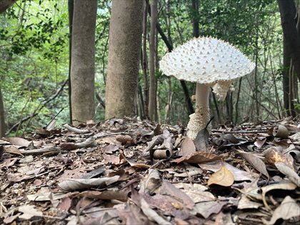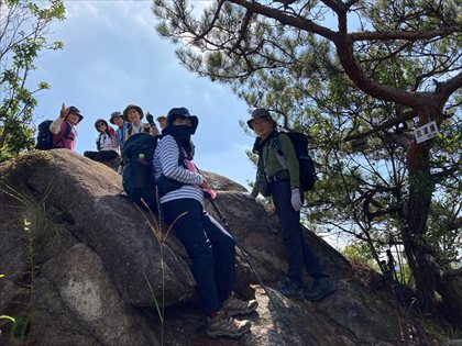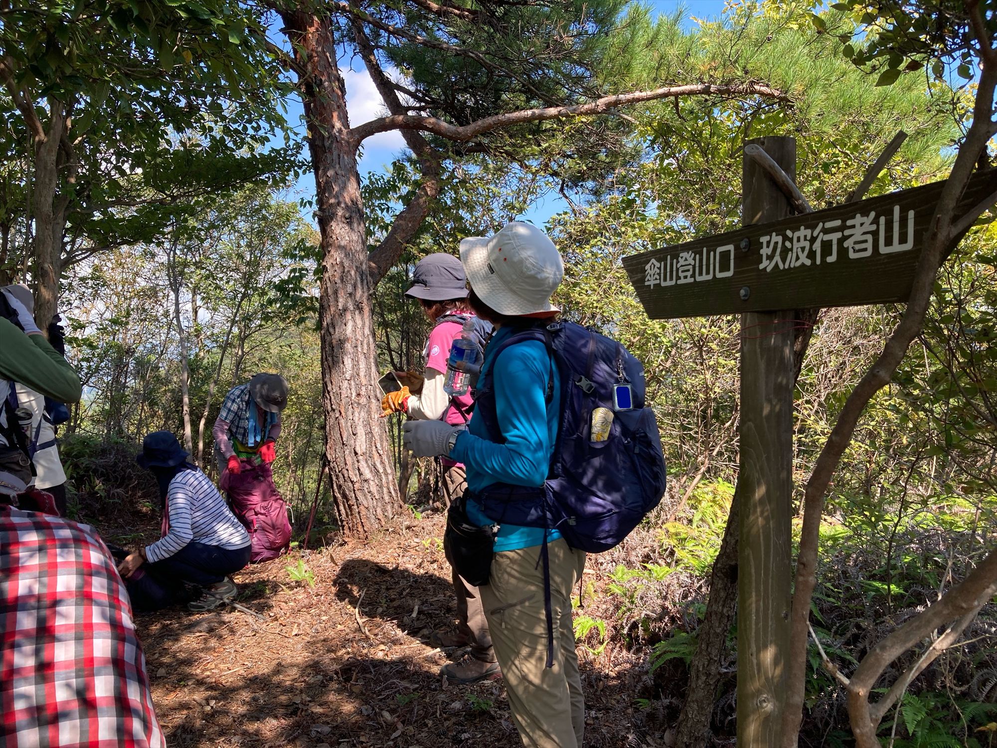 傘山を背に集合写真