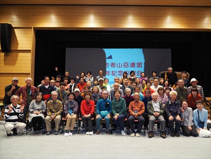 撮影後は各パーティそれぞれのコースで下山し始め16時からの懇親会に参加しました。 懇親会では安達会長からボードを使って広島労山の生い立ちが説明され、永谷さんの音頭で歌を歌って盛り上がりました。