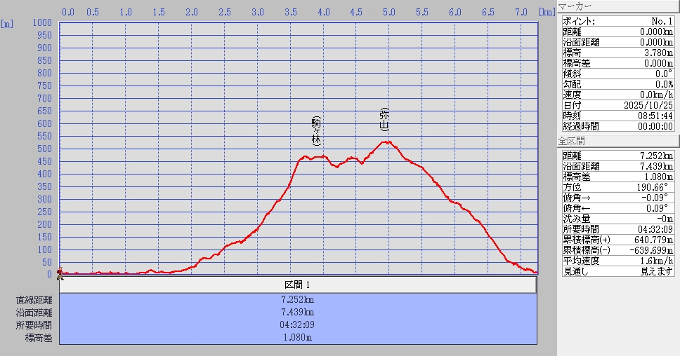 歩いたコース距離と標高