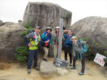 山頂にはすでに多くの仲間が待っていて、全パーティがそろってから記念撮影を行いました。