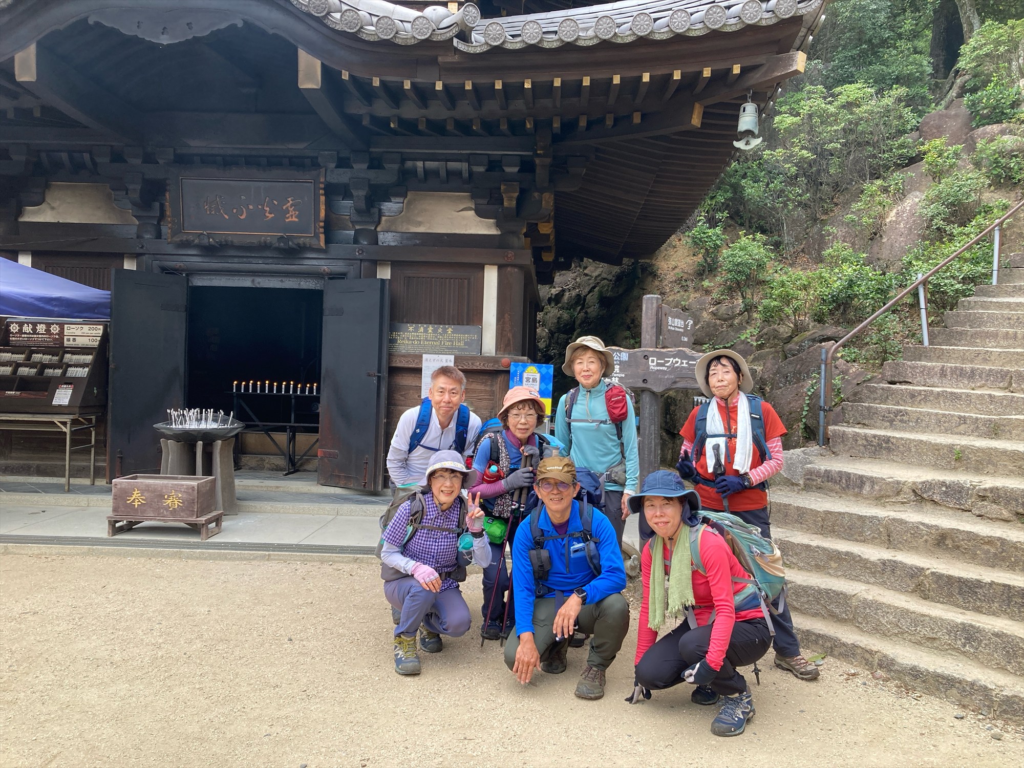 その後は相変わらず分岐を間違えそうになるCLを他メンバーが引き止めながら、岩屋大師の洞窟観光したりしてのんびり下山し、 雨がポツポツ来始めた13:40頃には無事下山して国民宿舎宮島杜の家のお風呂でゆっくりしました。 心残りだったのは国民宿舎に泡の飲み物の自販機がなく、風呂上がりの一杯ができなかった事くらいです。