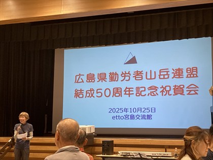 今回は広島労山の創立50種年を記念して7団体、86名がそれぞれのコースで弥山山頂で記念写真を撮ってその後懇親会を行うという県連主催の登山です。