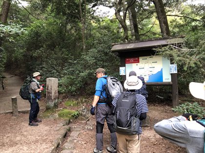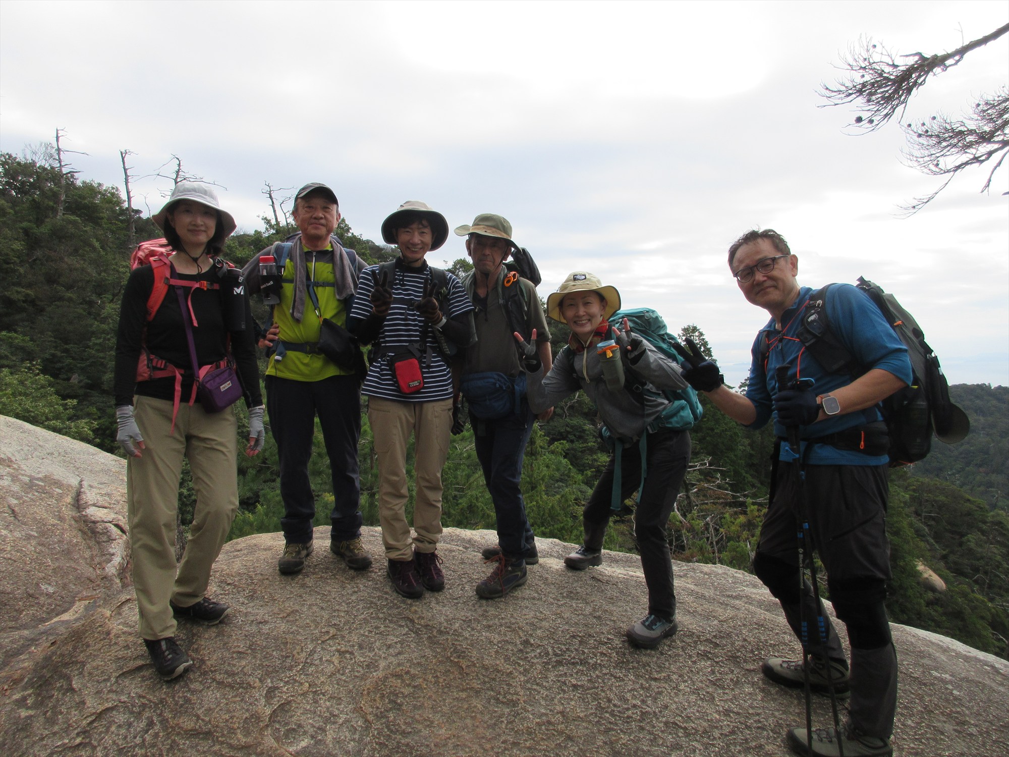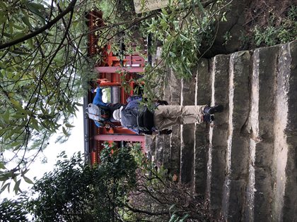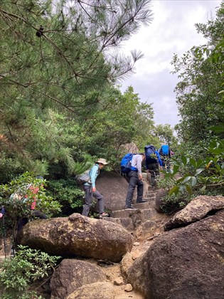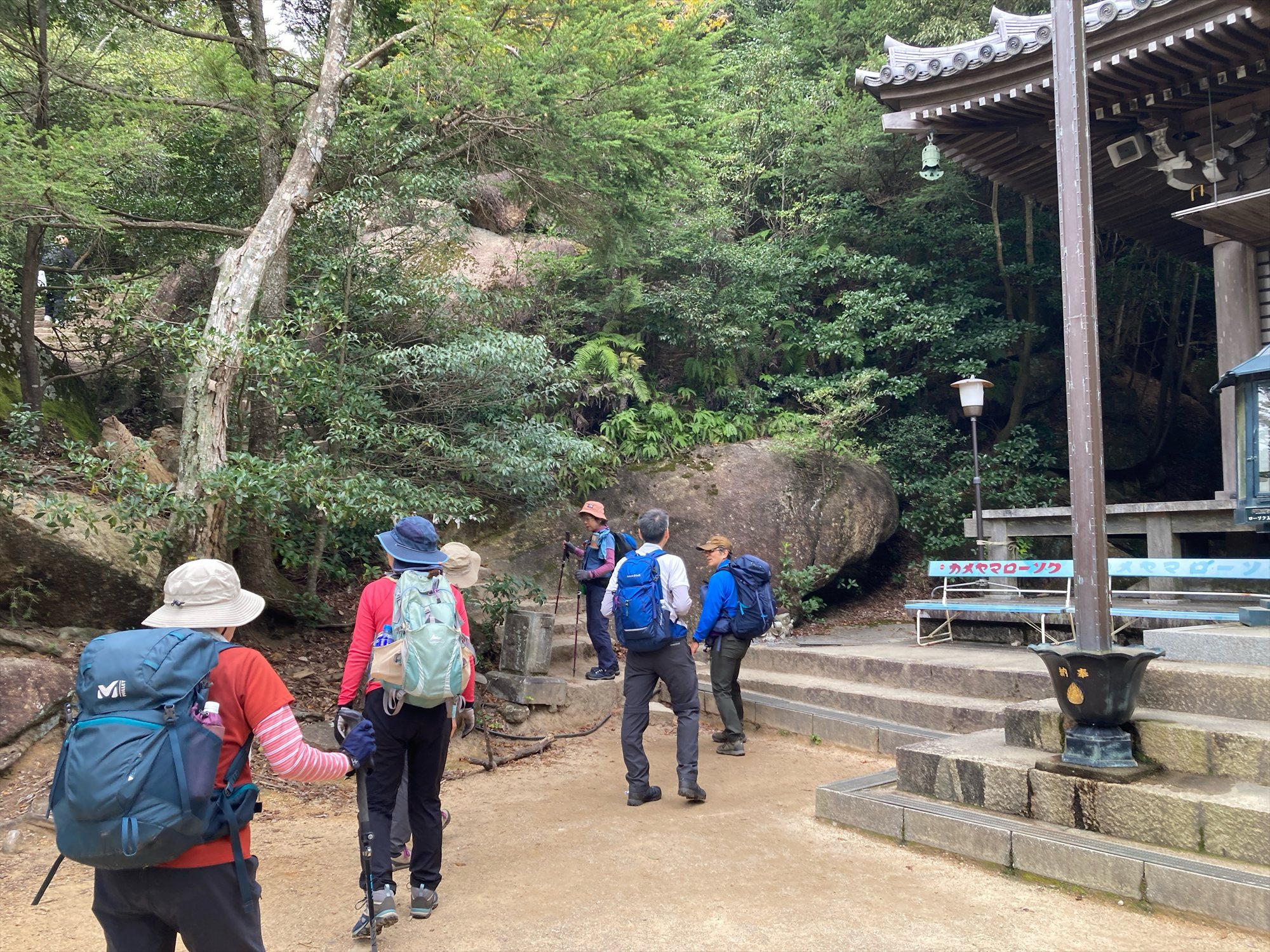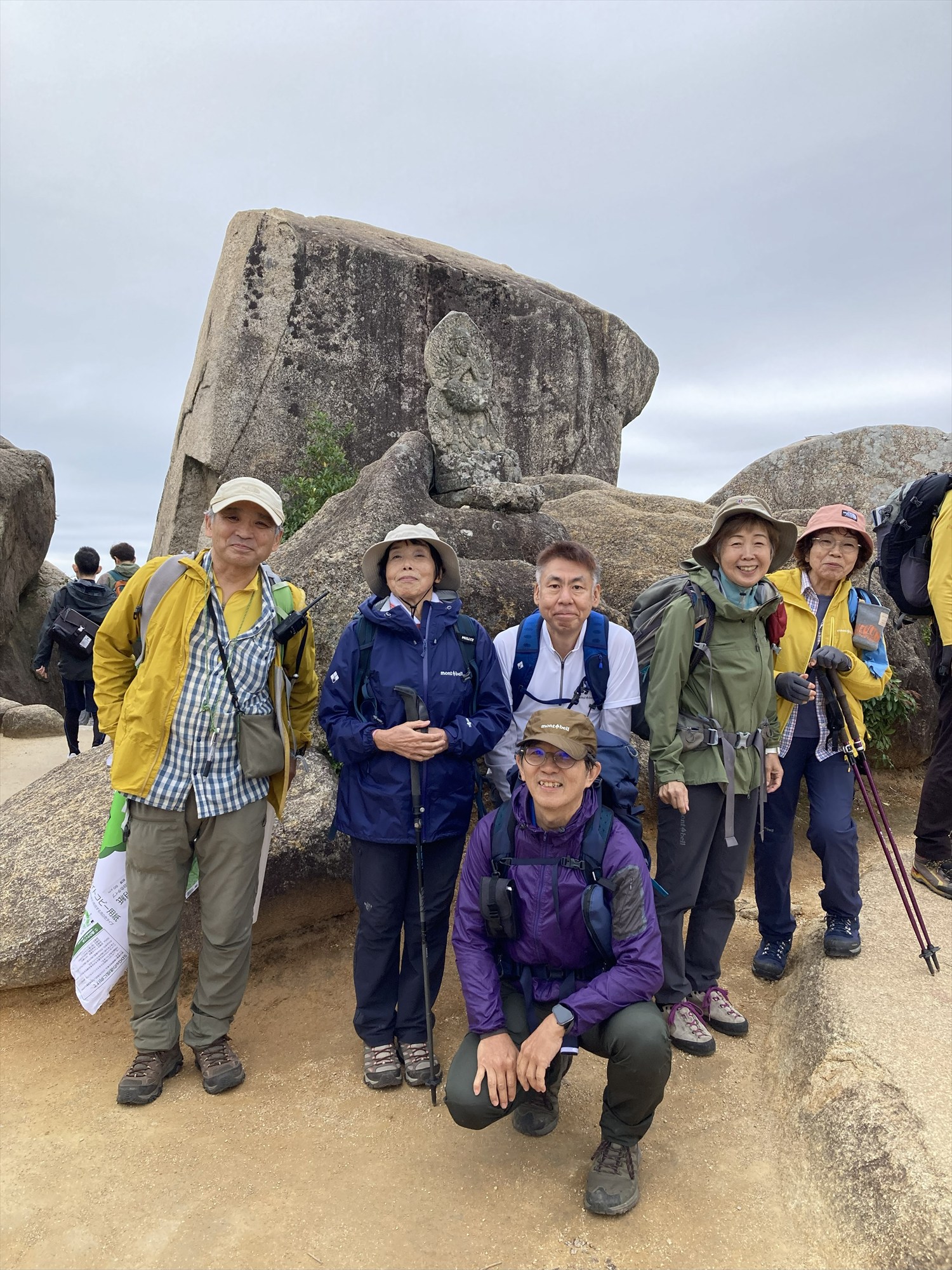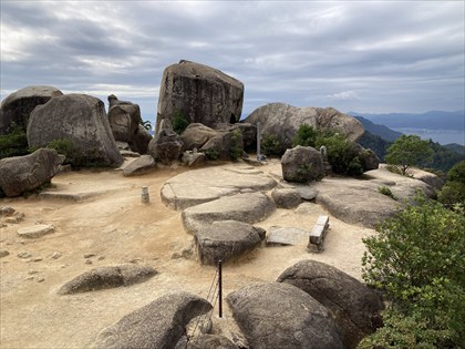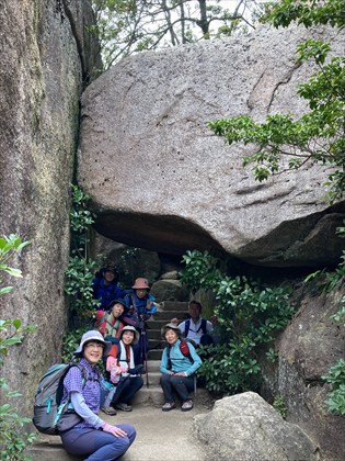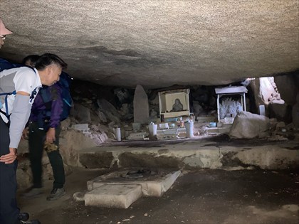 山頂近くの大きな岩の下で
