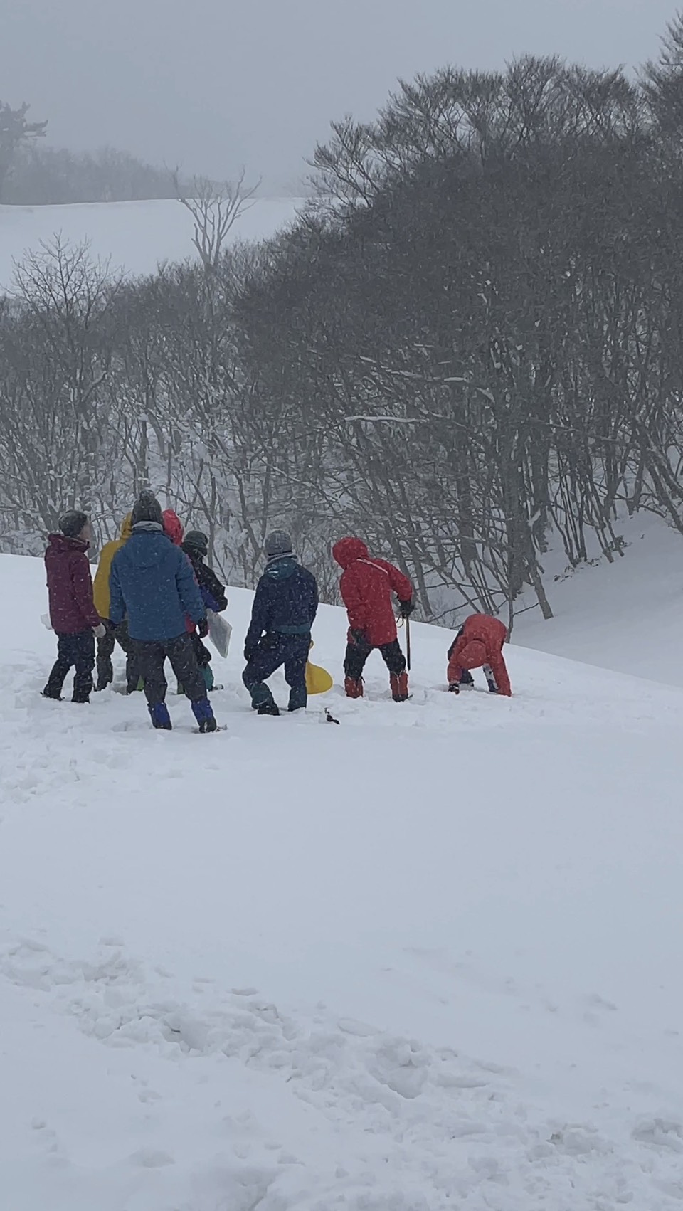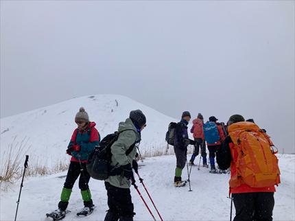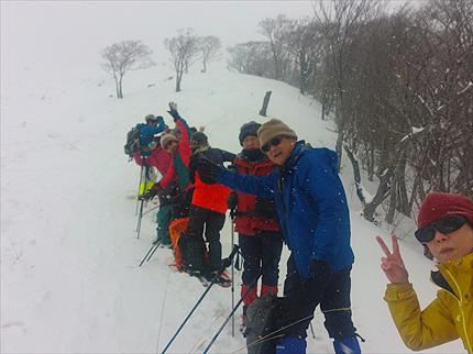 ワカン、スノーシュー、軽アイゼンを装着して出発