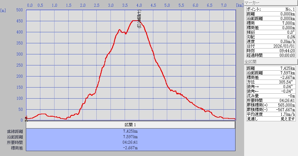 歩いたコース距離と標高