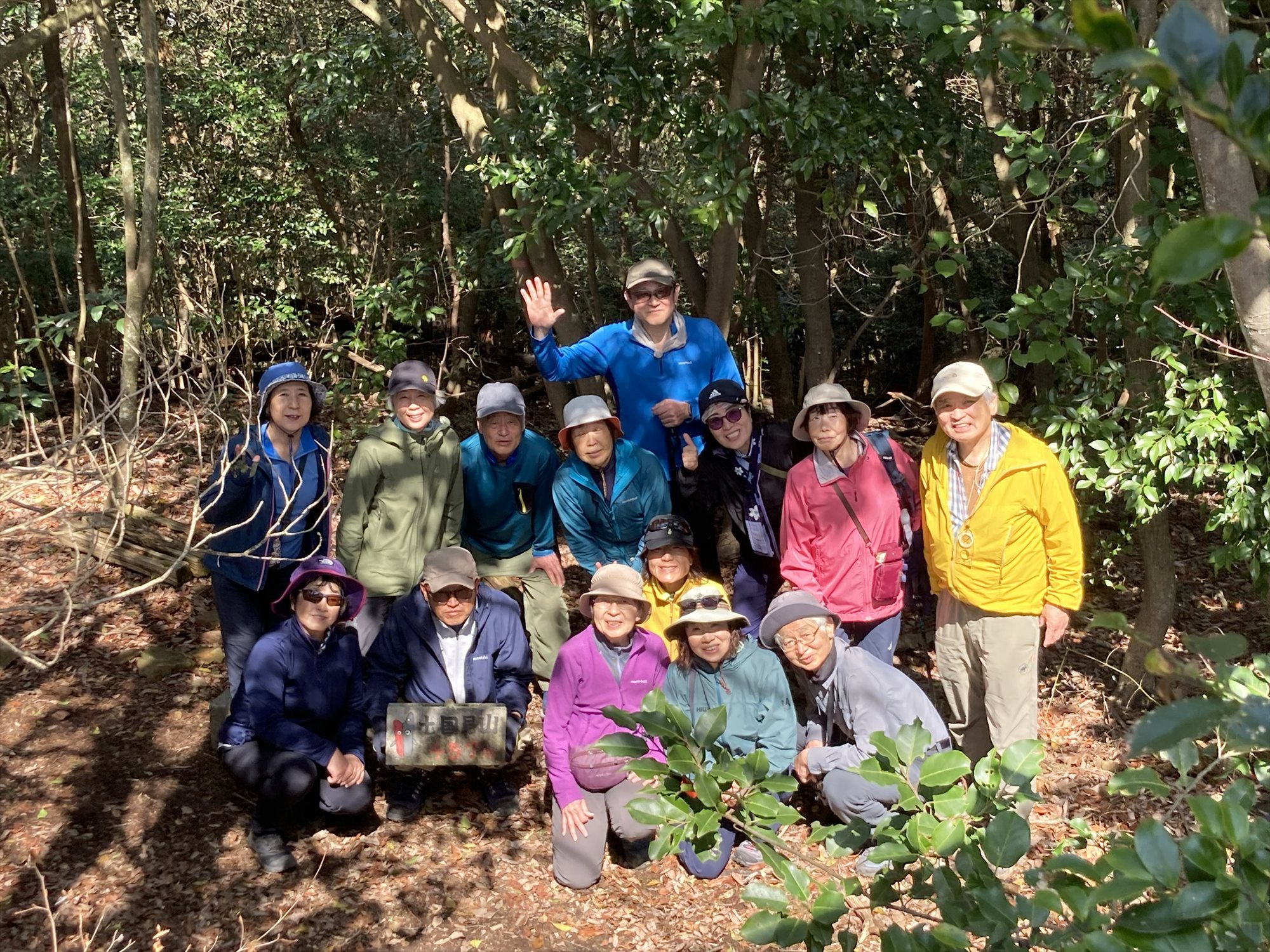 天気は晴朗であったが風が強く、瀬戸内では珍しく白波が立っていた。 営農センターバス停から登山口までは約1.8kmの車道歩き。 「家はたくさんあるけど人影が見えないねぇ〜」などと話しながら進む。 途中の果樹園で、収穫作業中の男性と若者3人ほどに挨拶をすると、「どこに行かれます?」と声をかけられ、「七国見山を縦走して田戸まで歩きます」と答えると、「形は悪いけど持っていって。 無農薬の樹上完熟だよ」と、コンテナいっぱいのデコポンを差し出してくださった。 参加者全員が2〜3個ずついただいても半分以上残るほどの量で、コンテナごと持っていくわけにもいかず、丁寧にお礼を述べて果樹園を後にした。心温まるご厚意に感謝。 登山口の蒲刈ウォーキングセンターは呉市農林水産課の所管で、登山者のために8時30分〜17時までトイレを開放しているとのこと。こちらにも感謝したい。
